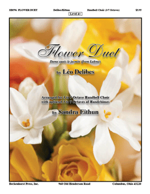 Arranged for 3 to 7 octave handbell choir and optional 3 to 7 octaves of handchime. Level 4+. Leo Delibes. From the talented pen of Sandra Eithun comes another fantastic transcription of a well-know piece from classical literature, this one from Léo Delibes’ Lakmé. Flowing sixteenth notes and deep, sonorous bass lines create a truly magnificent tonal experience. Delicate plucks and malleted notes appear throughout, replicating pizzicato string notes to great effect. A true masterwork, and a brilliant addition to the advanced handbell literature. The recording is a live performance of the Kalamazoo Ringers under the direction of Janet Van Valey.
