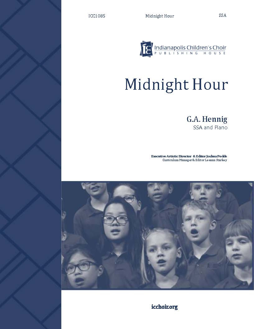 Midnight Hour by G. A. Hennig is a lyrical Christmas work for SSA and piano, with optional handbells adding a shimmering color to the texture. Gracefully written choral lines create an angelic sound, making this piece a beautiful and reflective choice for the Christmas season.