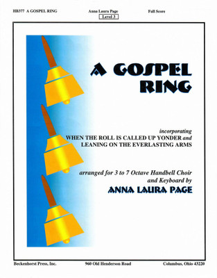 Full score (keyboard and 3-7 octave handbell part) Anna Laura Page his given us A Gospel Ring, a laid-back swing arrangement of "When the Roll Is Called Up Yonder" and "Leaning on the Everlasting Arms," for three to seven octaves of handbells and keyboard. This energetic amalgam of two beloved spirituals is guaranteed to delight both your ringers and your audience. Both the bells and keyboard play an equal role in this arrangement, so your musicians will need to pay careful attention to their dynamic levels. This piece makes a unique addition to either a worship service or a spring concert.