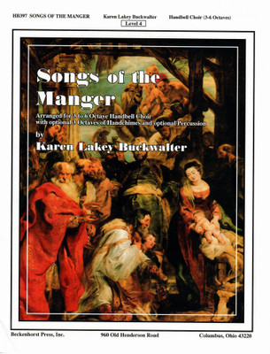 Karen Buckwalter’s mysterious and beautiful arrangement of three Christmas carols –“Away In a Manger,” “There’s a Song in the Air,” and “The Holly and the Ivy” – is the perfect way to evoke the wonder of the season. From its haunting opening with mallets on suspended bells (with the option to play them on a bell tree) through a dance-like middle section and on through a creative combining of melodies, the piece will engage your audience and your ringers. Be sure to add the optional wind chimes, hand drum, tambourine, and finger cymbals for optimal effect. 3-6 octaves - level 4